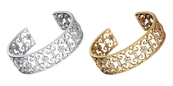 Original sterling silver bracelet shown on left. Altered to be yellow gold.