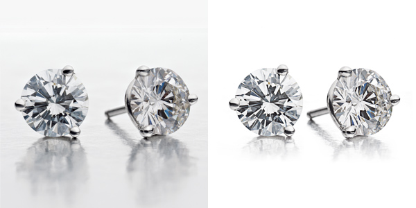 - Raw file of diamond stud earrings, silhouetted, pathed, and facets cleaned for final print or web file.