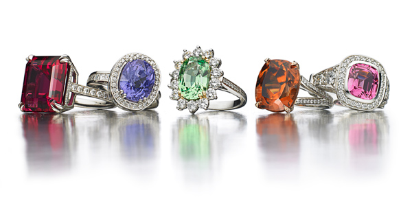 - Gemstone and diamond ring composition for print advertisement